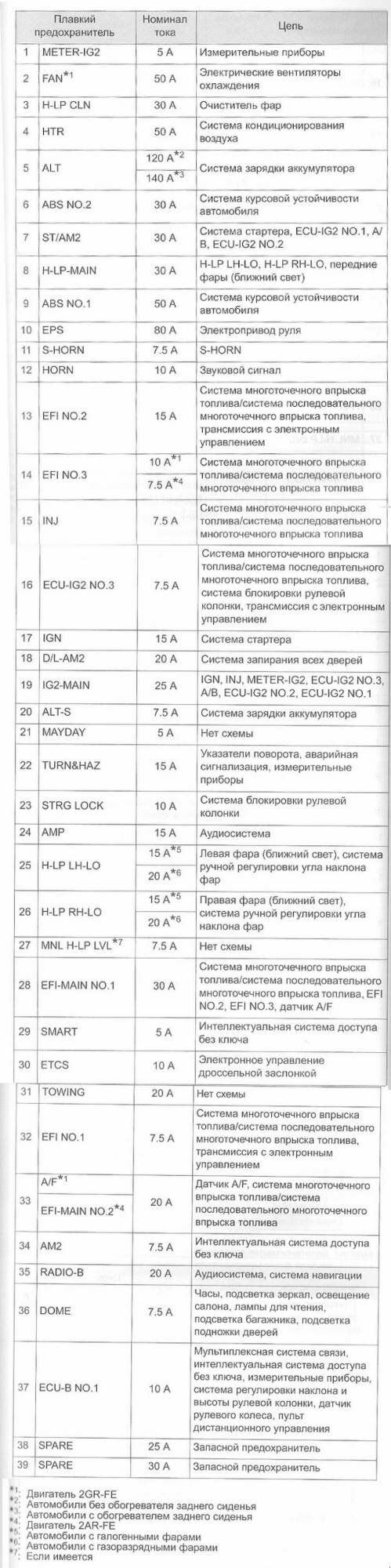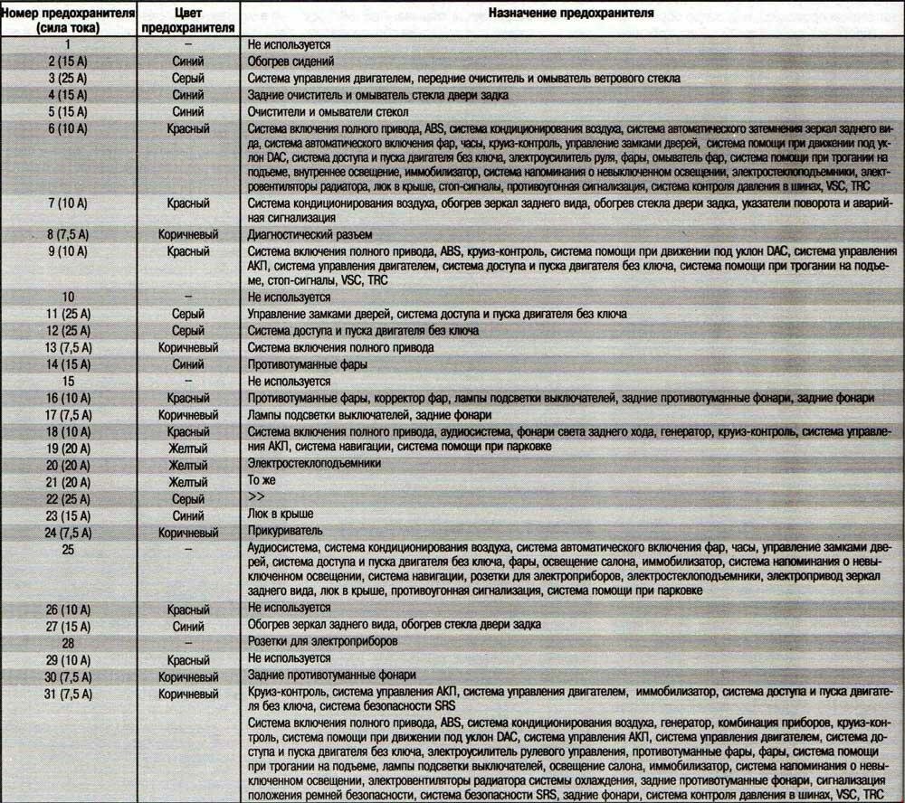 Предохранители автомобиля Toyota RAV4 с 2005 г