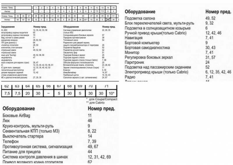 Сборник схем предохранителей и реле для различных моделей автомобилей BMW - 3, 4, 5, 6 и 7-й серии. Некоторые обозначения на английском языке, по мере поступления новых схем вся информация будет заменяться на русскоязычную. При разных модификациях список расположения предохранителей может немного отличаться. Для увеличения размера клик по картинке и сверху на значок.
