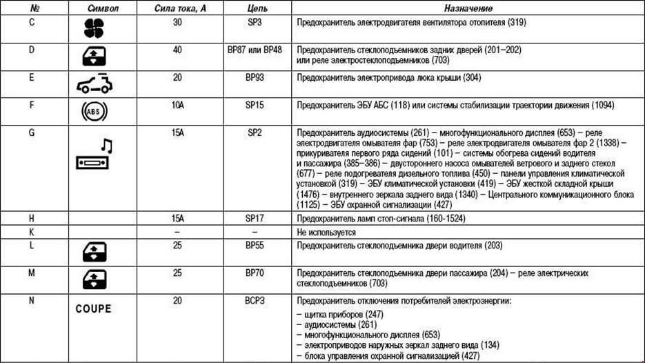 Схема предохранителей двигателя Renault Megane 2