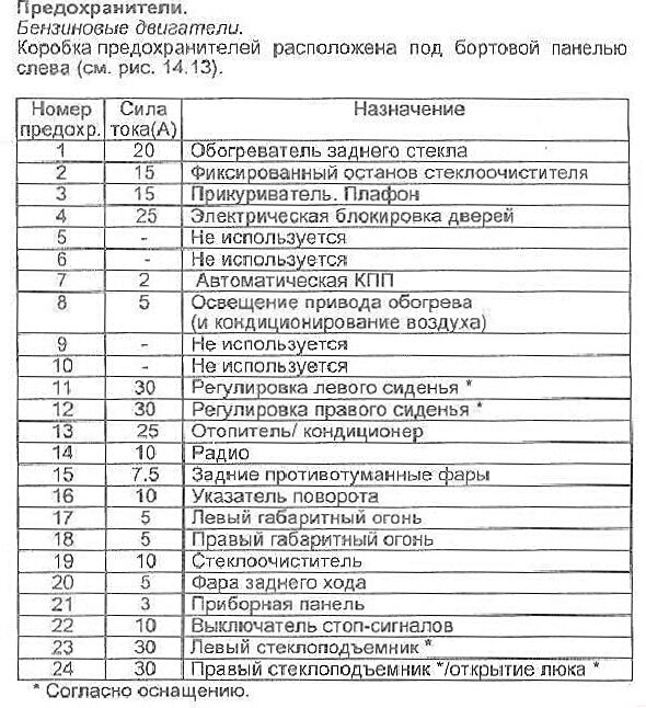 Схема предохранителей Renault Safrane