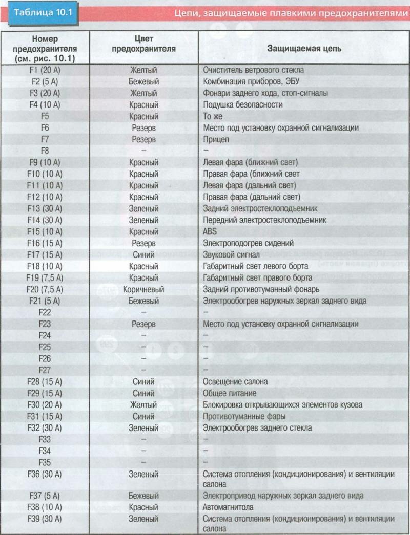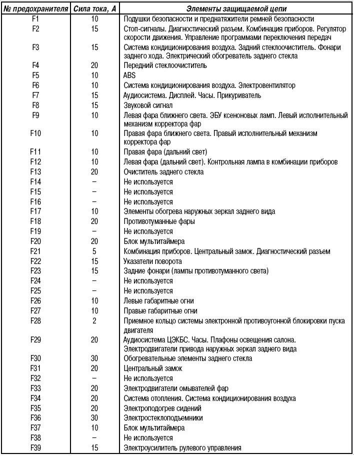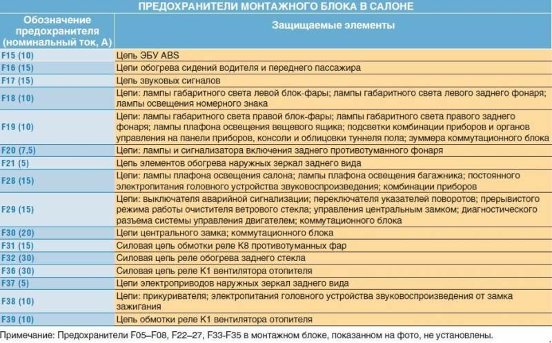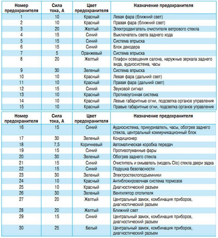Цепи, защищаемые предохранителями в салоне Рено Символ