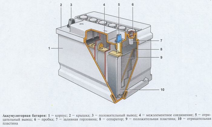 И ещё одна причина неисправности возникает из-за неправильной эксплуатации и хранения АКБ. Известно, что наполовину или совсем разряженный аккумулятор при сильном морозе иногда замерзает. Проблема в том, что в этом случае повреждаются как сами пластины, так и корпус. Следствием этого становятся многочисленные замыкания между пластинами, а также то, что при зарядке электролит быстро закипает. Восстановить такой аккумулятор уже невозможно, поэтому на зиму аккумулятор снимают и хранят в тепле. Подробнее о зимнем обслуживании читайте тут.