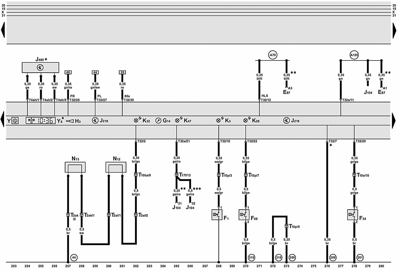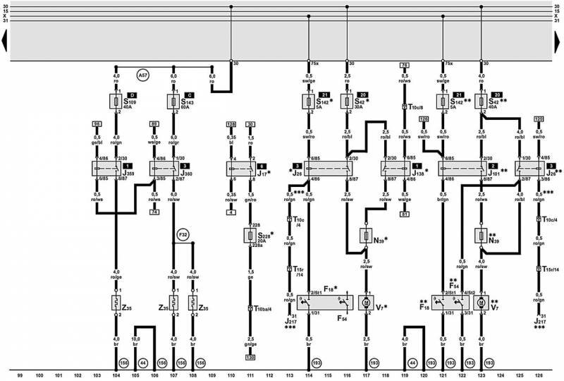 A66 – соединение (30а, ZV/ DWA/ IR) в электропроводке панели приборов