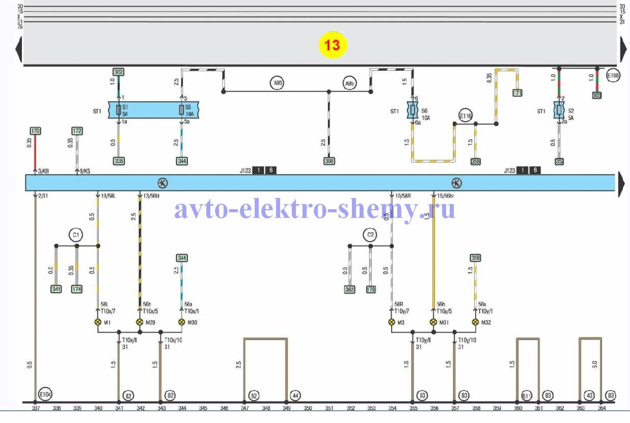 R3 – соединение (дверной выключатель освещения, справа и слева), в электропроводке стеклоподъемник/ система замков с центральным управлением и дверной выключатель освещения