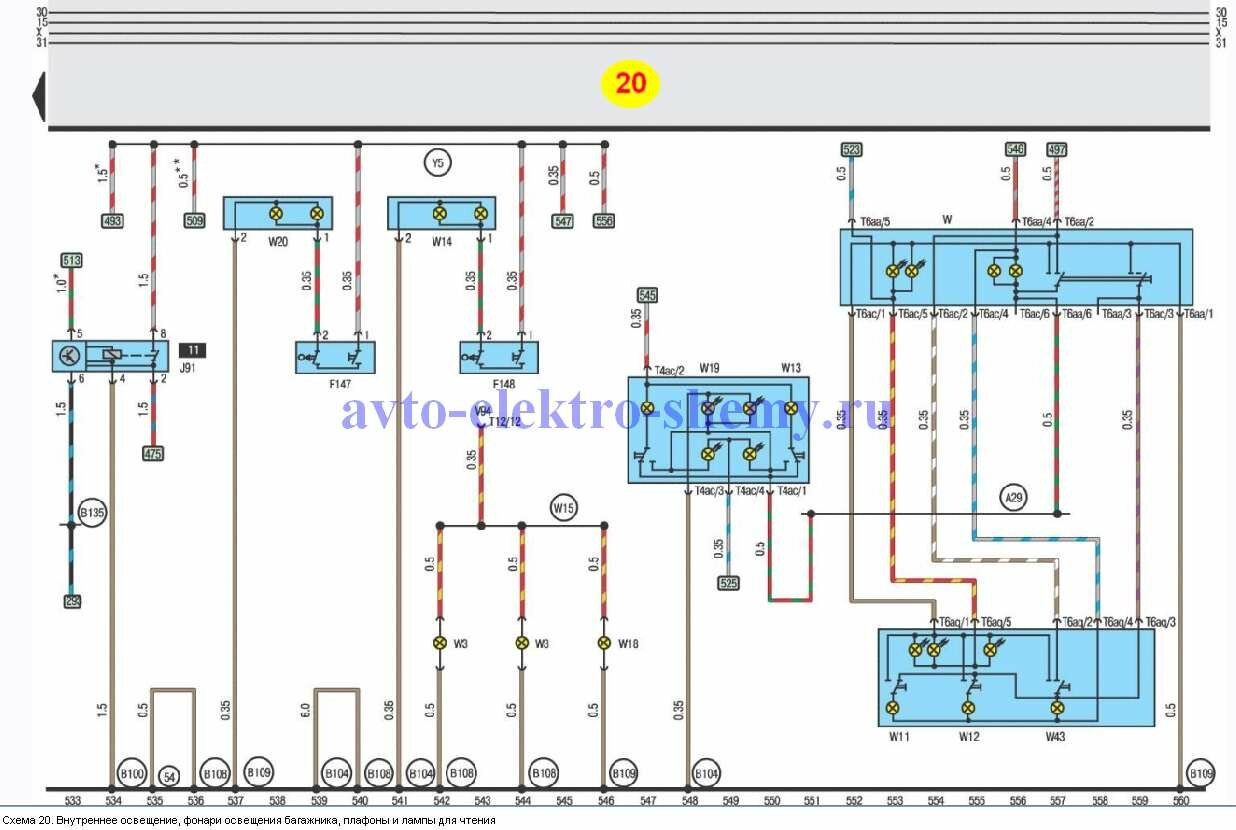 R28 – соединение 2 (дверной выключатель освещения), в задней электропроводке