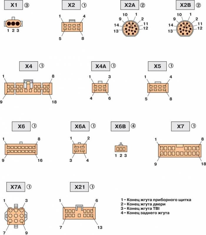 Х6В........Соединитель (3 штифта) для заднего жгута и отвода жгута приборного щитка