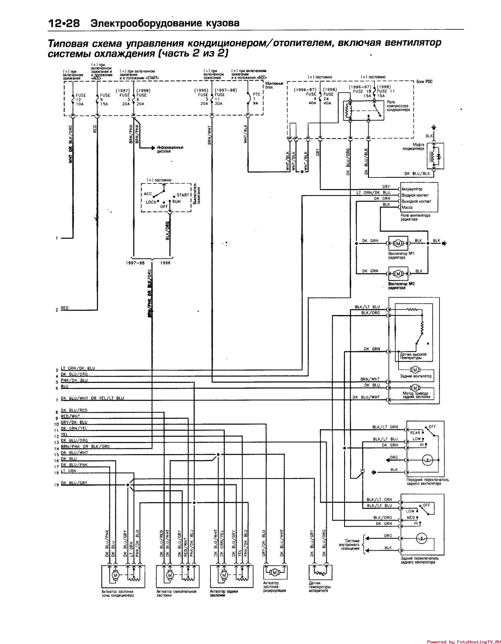 Электросхема управления кондеционнером - отопителем и вентилятором системы охлаждения