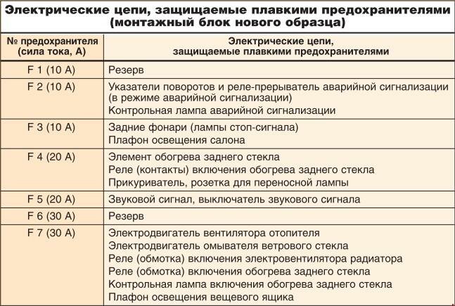 Перечень предохранителей ИЖ 2126 "Ода"