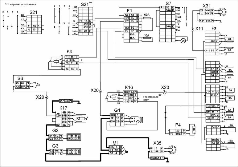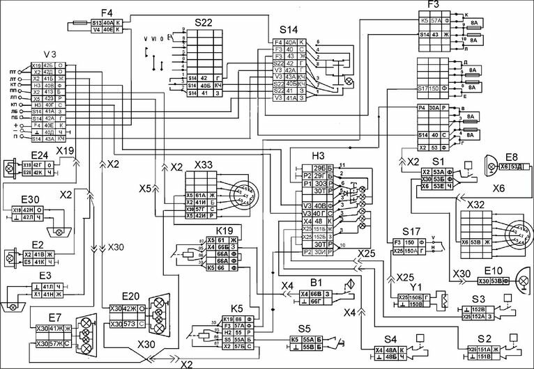 Электросхема систем световой сигнализации КАМАЗ