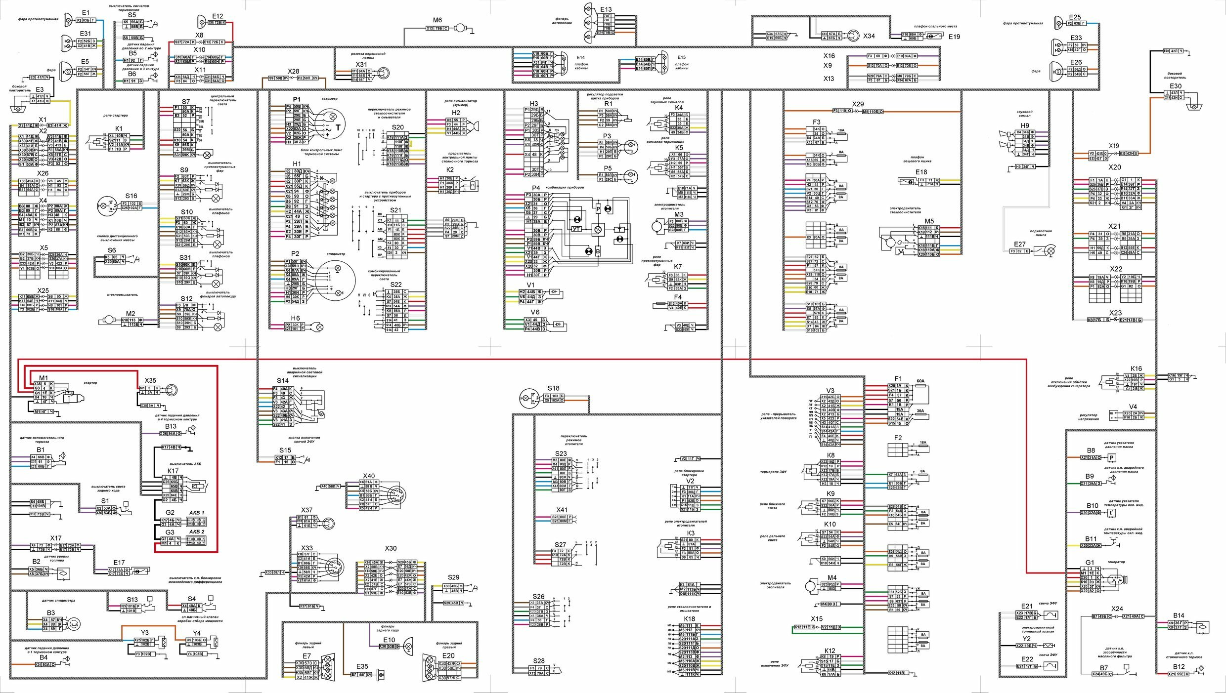 Общая электросхема КАМАЗ моделей 5320, 5410, 5511