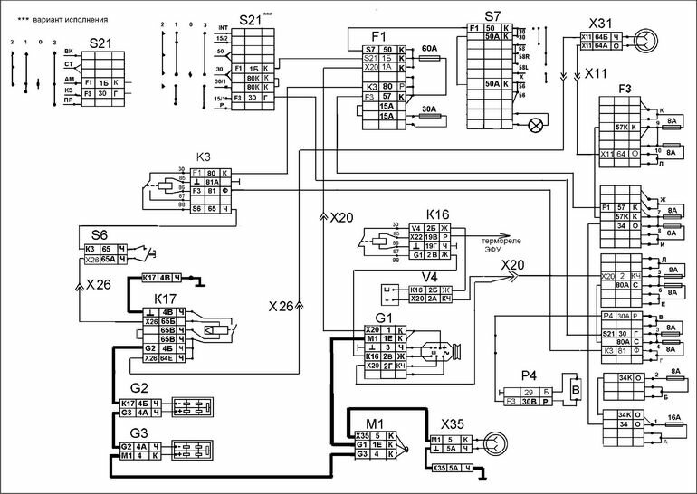 Электросхема систем энергоснабжения и очистки КАМАЗ