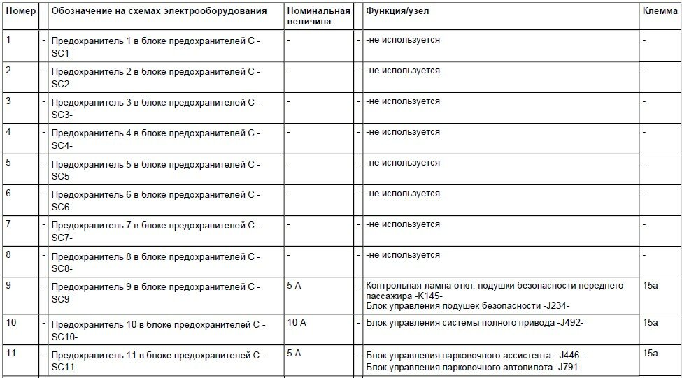 Предохранители в блоке предохранителей C, в пространстве для ног водителя
