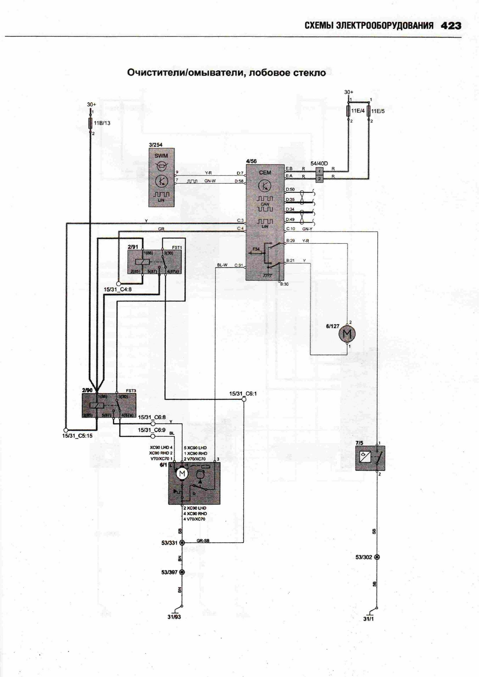 Схема электрическая центрального замка Вольво ХС90
