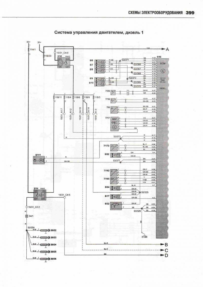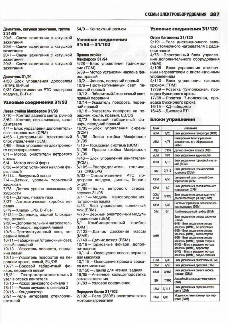 Список сокращений и расшифровка цветов проводов на схемах Volvo XC90