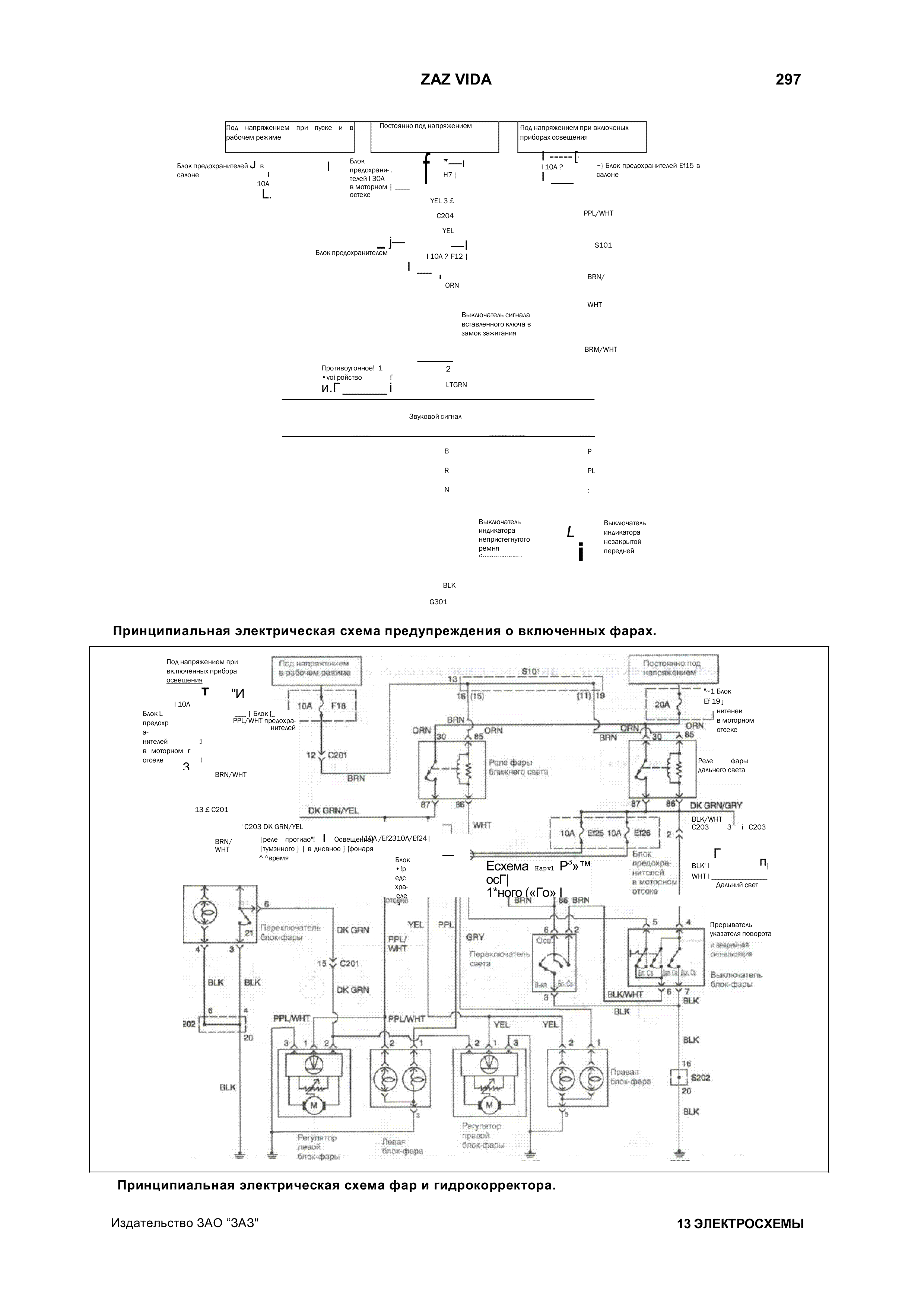 Электросхема фар и гидрокорректора Заз Вида