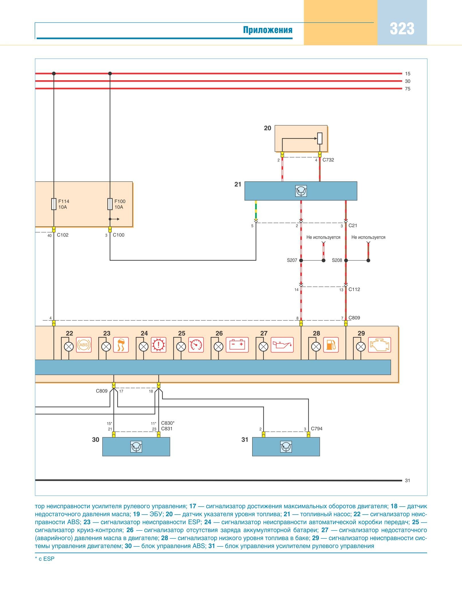 Схема соединений подсветки панели приборов