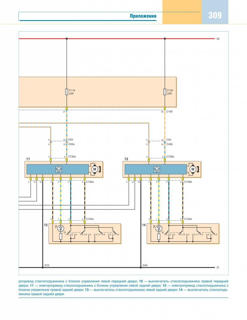 Стеклоподъёмники с электроприводом - схема принципиальная