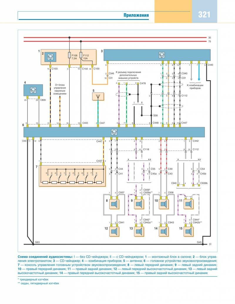 Схема аудиосистемы - подключение динамиков