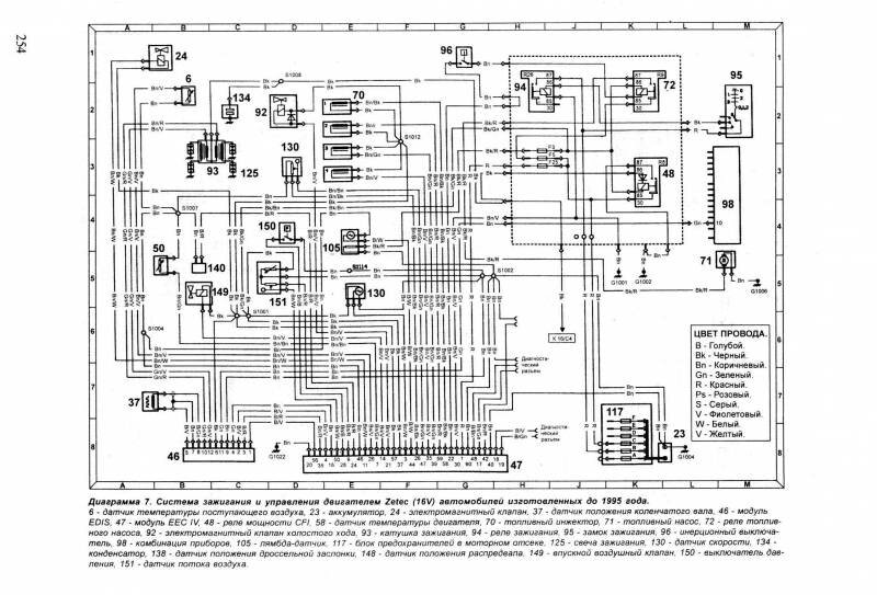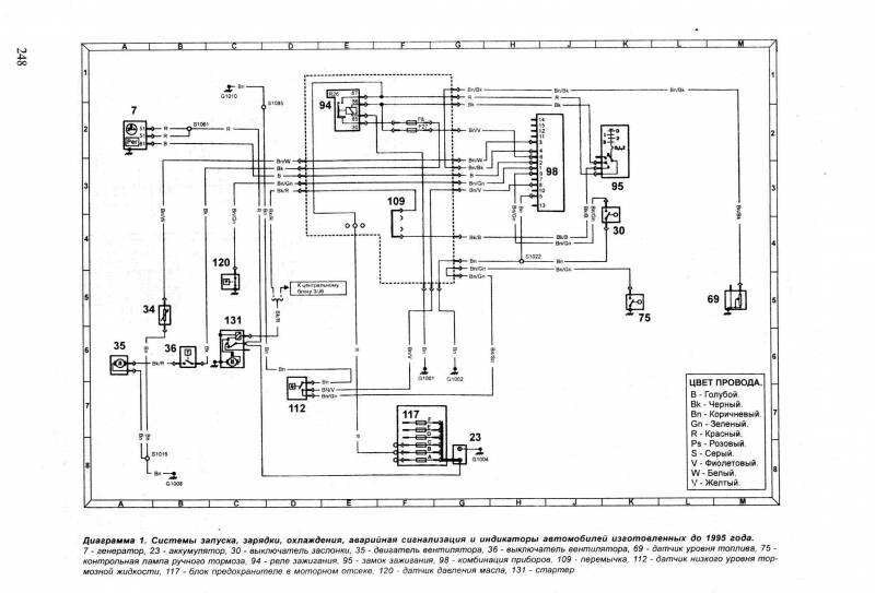 Числами в местах соединений на электрической схеме обозначены номера токовых контуров в соответствии со стандартом DIN.