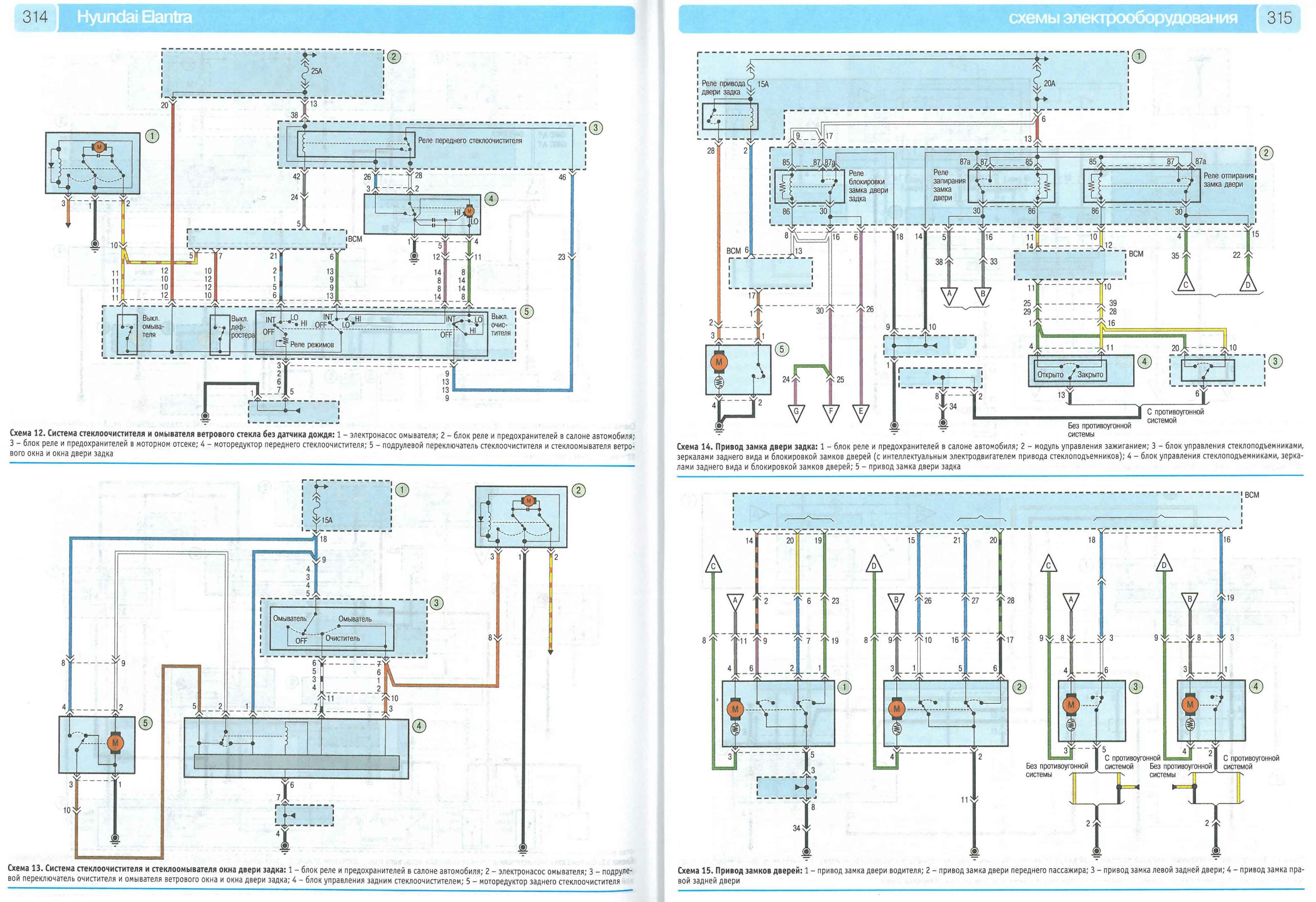Схемы электрооборудования омывателей стёкол и приводов замков дверей Элантра