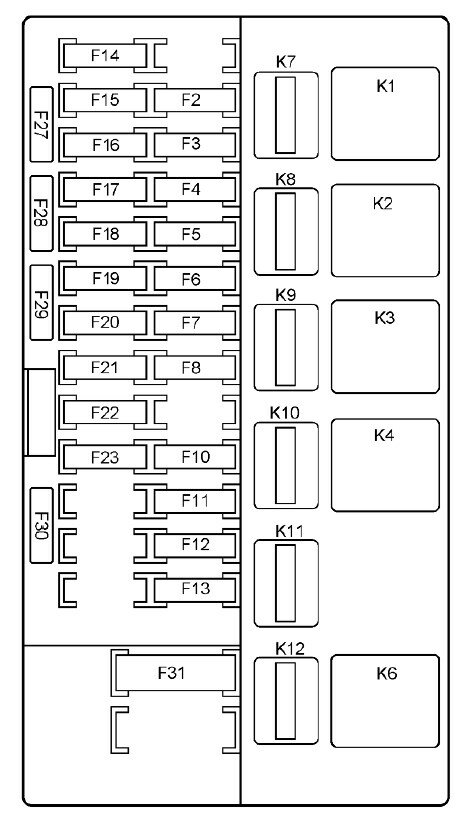 F2 (синий) 60 блок управления электропакетом, электровентилятор двигателя, обогрев заднего стекла, реле разгрузки выключателя зажигания