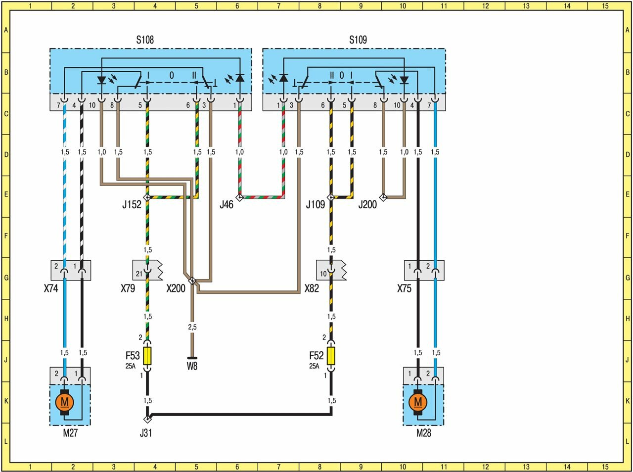 J22 Вывод <15>, защищенный предохранителем 8E