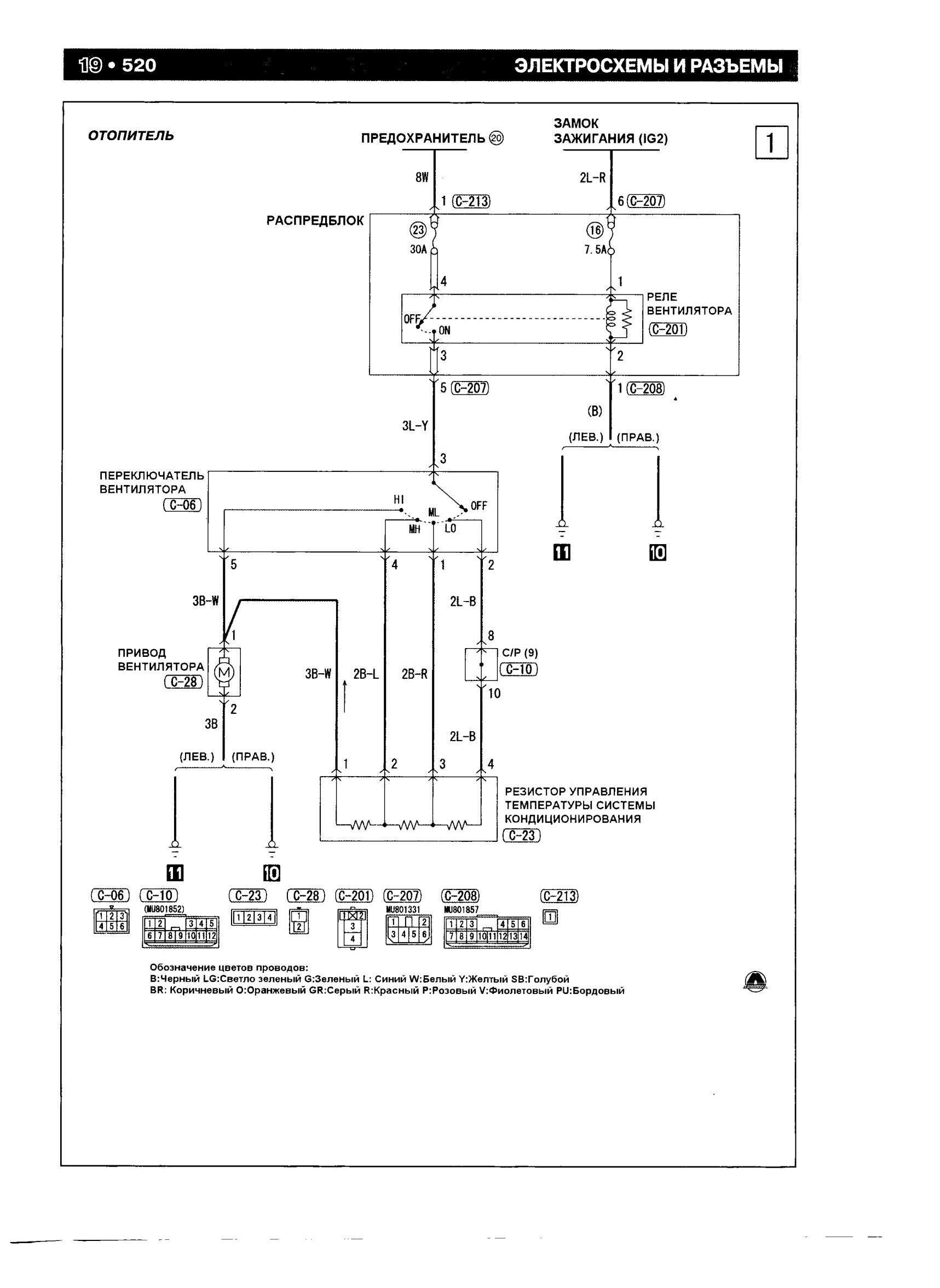 Принципиальная электрическая схема распределительного блока Митсубиси Л200