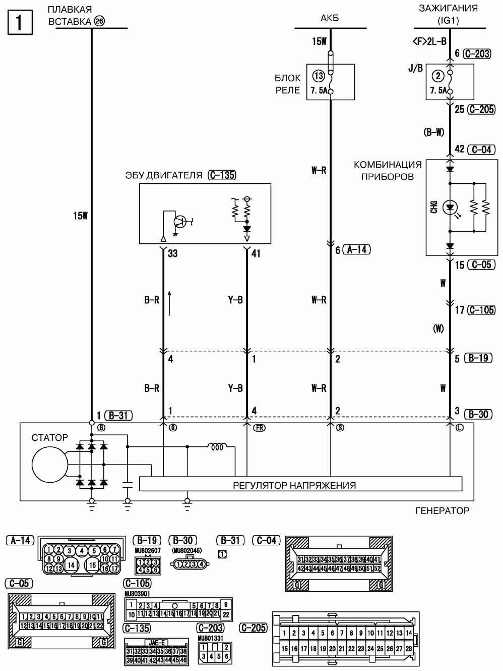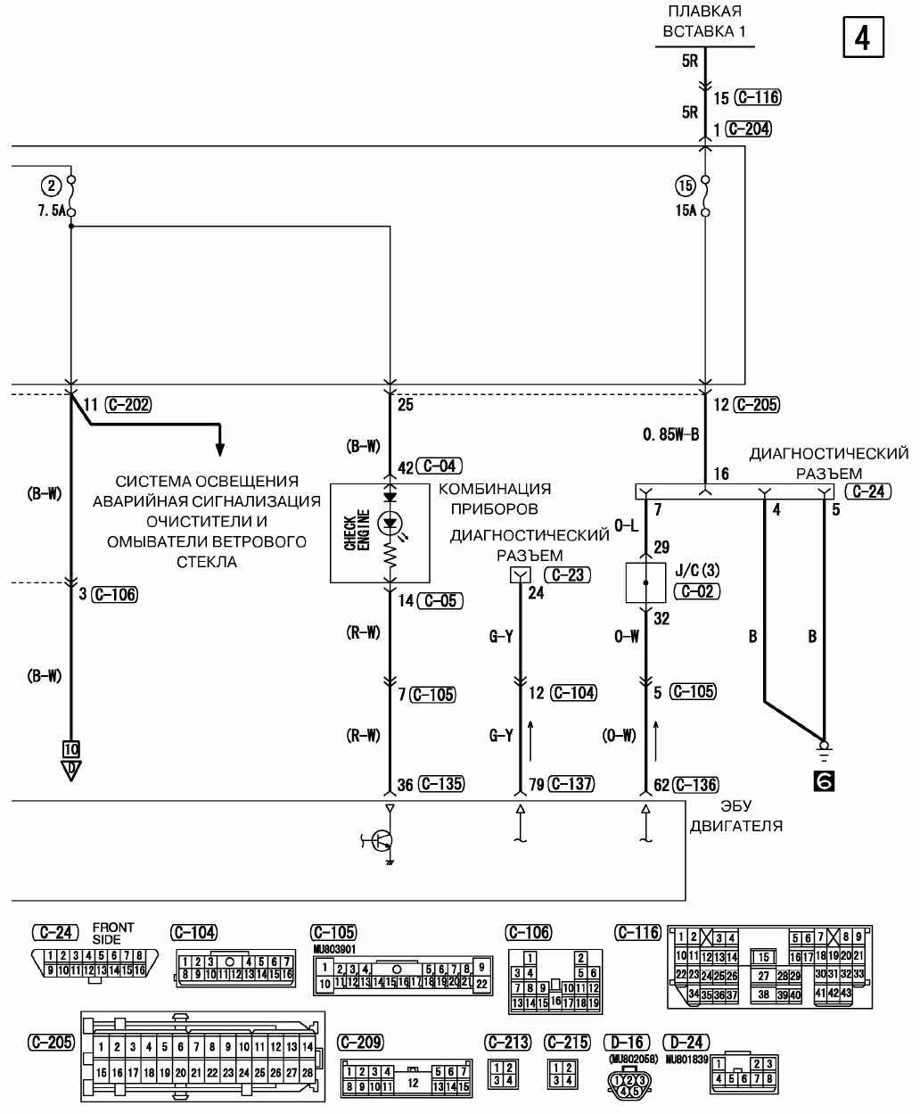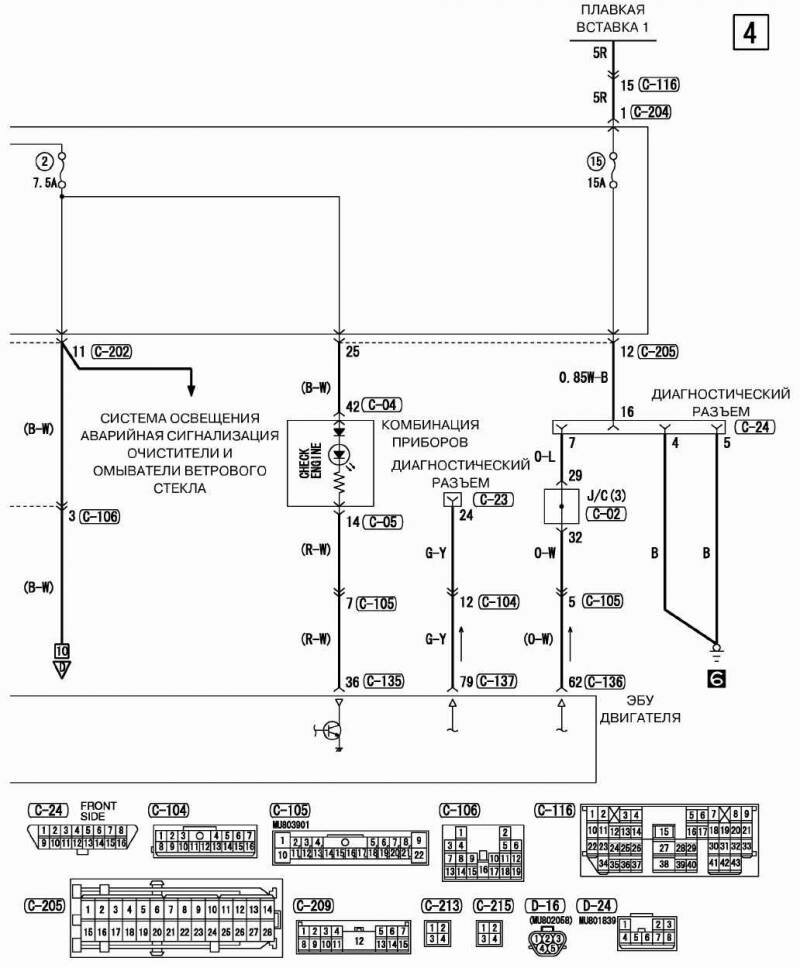 Электросхема диагностического разъёма Митсубиси Аутландер