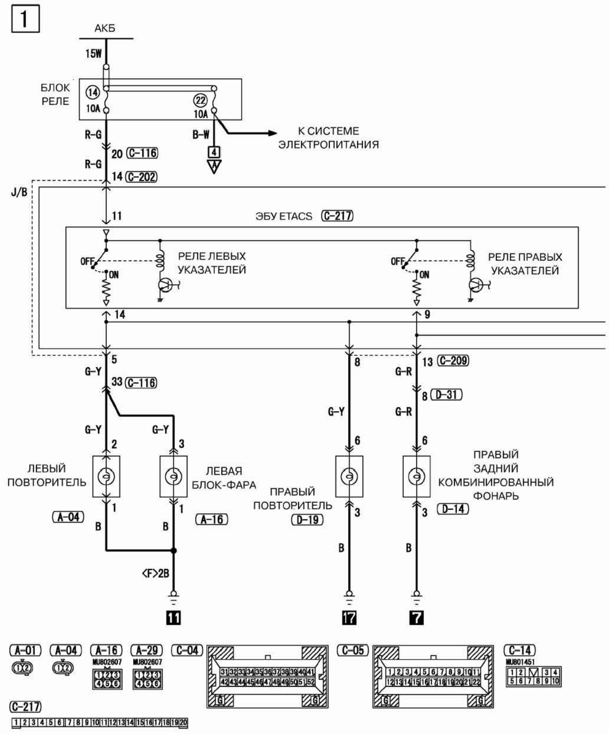 Схема подключения блок-фары, повторителя и контрольной лампы
