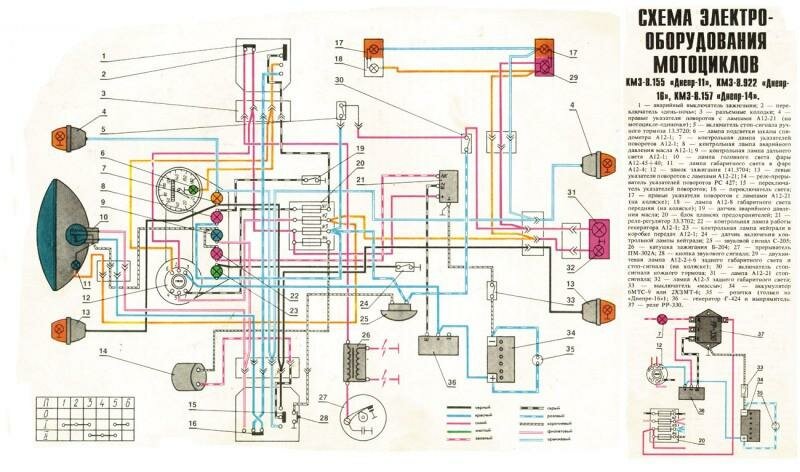 Электросхема мотоцикла КМЗ-8,155 Днепр-11 и КМЗ-8.922 Днепр-16