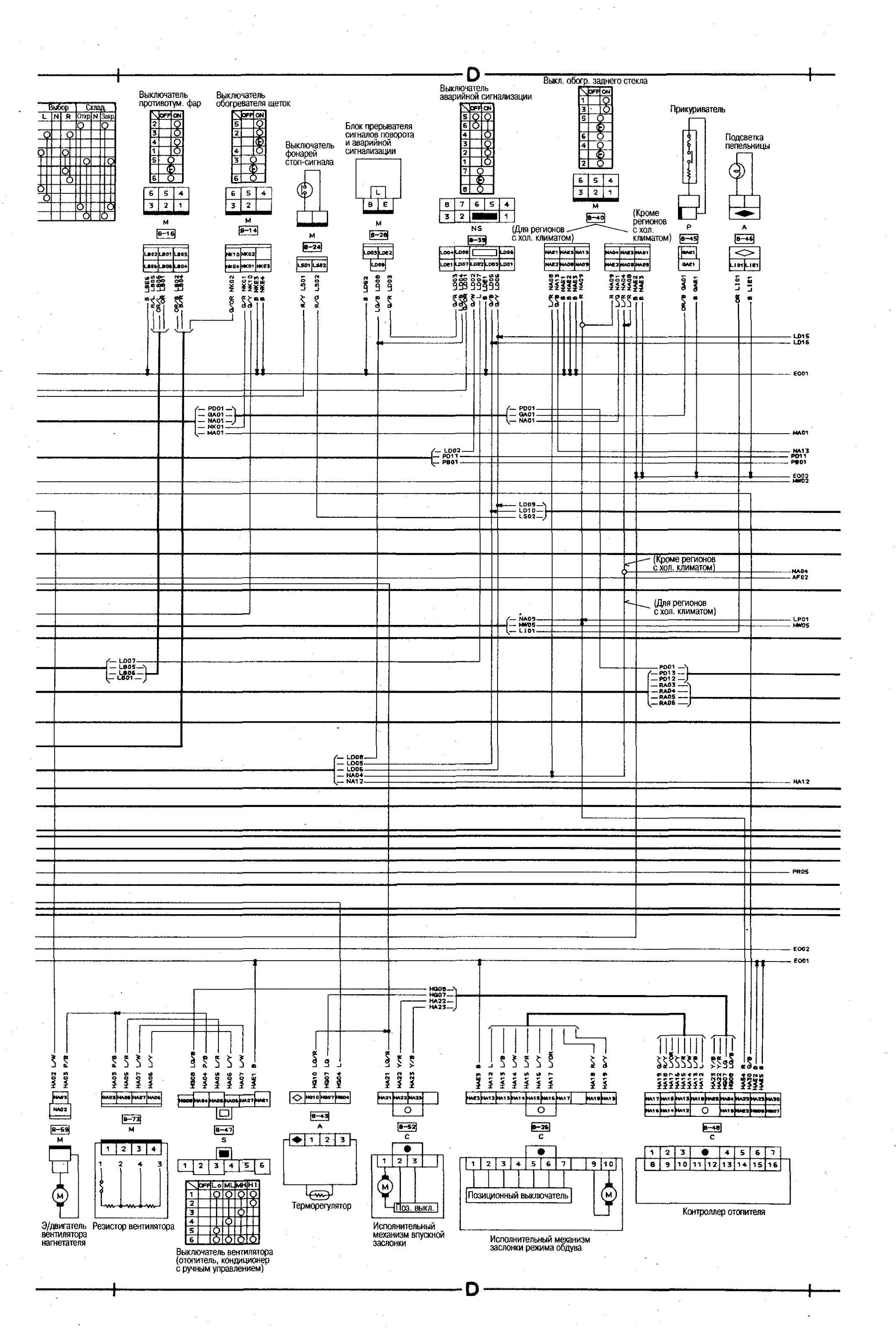 Электросхема соединений главной проводки Nissan Bluebird
