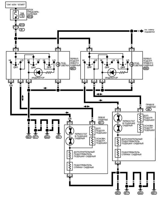 Электросхема подогрева сидений