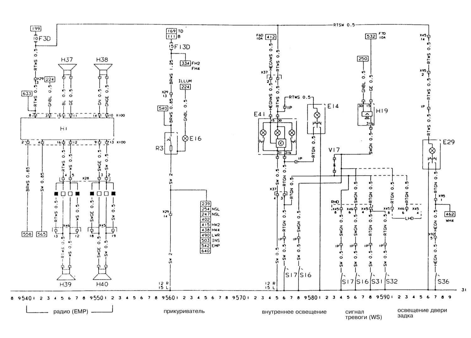 Электроссхемы автомобиля Опель фронтера. Ниже смотрите расшифровки и обозначения элементов на схемах. Номер, заключенный в рамку, например, 406, указывает на цепь, имеющую продолжение с тем же номером. Наименование элементов приведены в соответствии с DIN 40719, обозначение линий в соответствии с DIN 47002. Некоторое наложение участков схем Опель фронтера облегчает чтение. Начало схем электрооборудования Opel Frontera находится здесь.