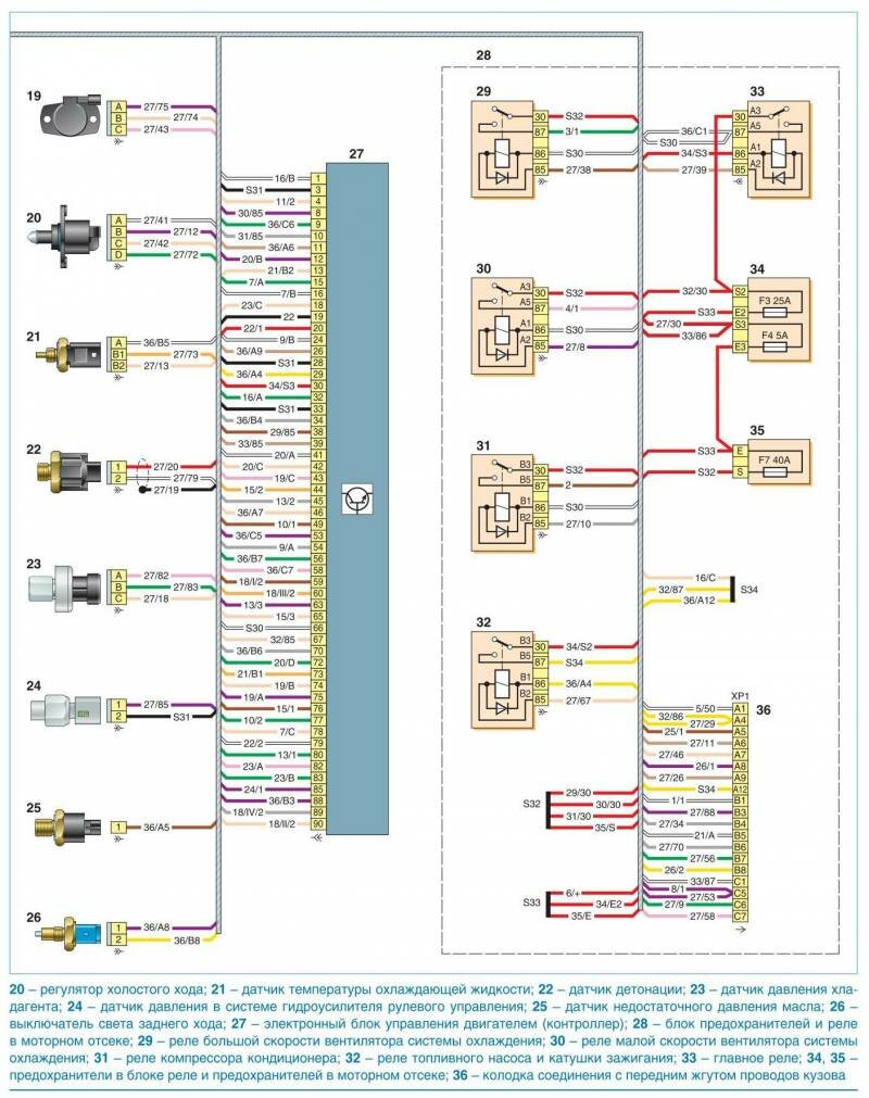 Схема соединений жгута проводов Renault Sandero двигателя 1,6 16V