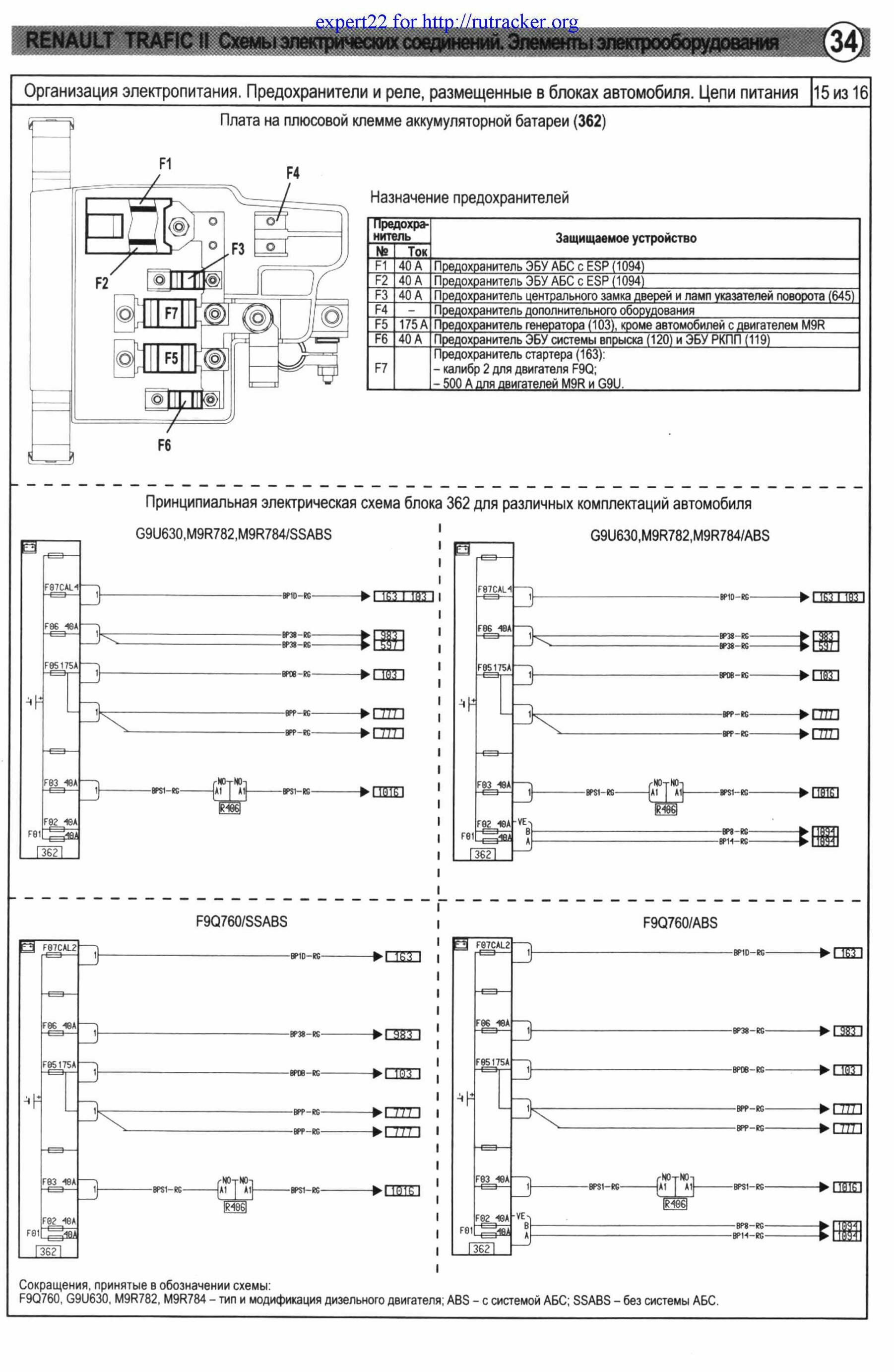 Принципиальные схемы электрооборудования автомобиля Renault Trafic - предохранители и реле с их обозначениями и номиналами. Все схемы на русском языке и в хорошем качестве. Чтоб развернуть картинку на весь экран - кликните на неё. Приведены назначения и местоположениях всех предохранителей, показаны защищаемые цепи. Указаны их условные обозначения на корпусе. Схемы защищены от копирования и просматривать их можно только на сайте. Продолжение сборника, с описание остальных схем Renault Trafic.