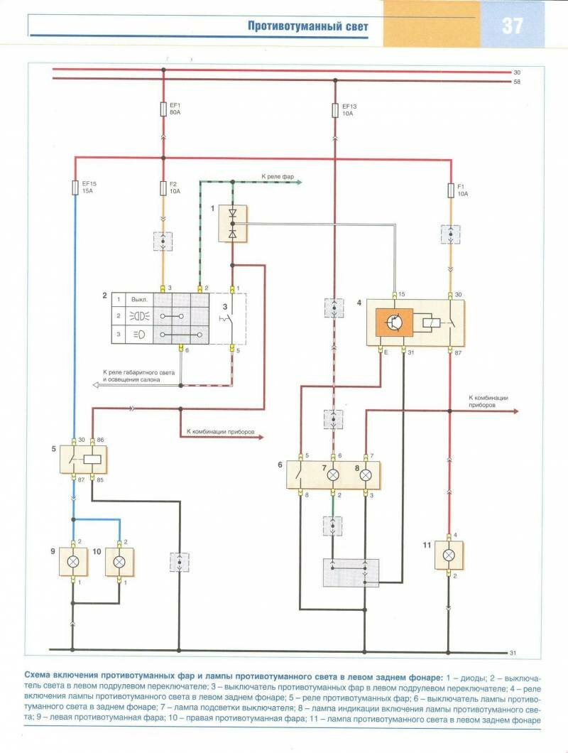 Электросхема противотуманных фар