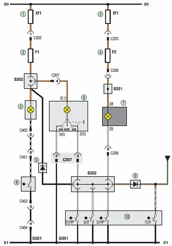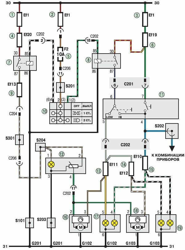 Электросхема электрической проводки и узлов приборов освещения автомобиля шевроле - ланос. Соединение приборов освещения: