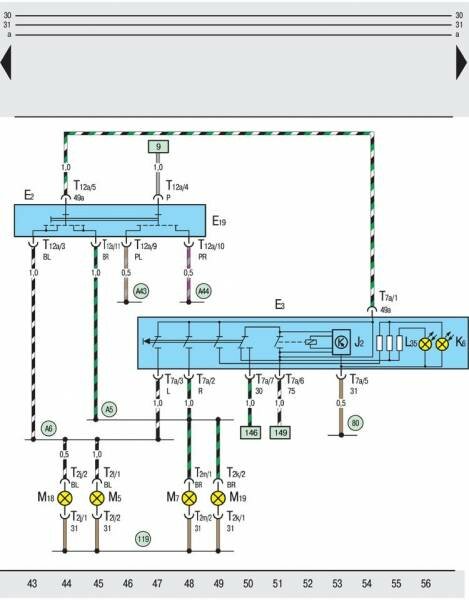M19 – лампа накаливания правого бокового повторителя указателя поворота;