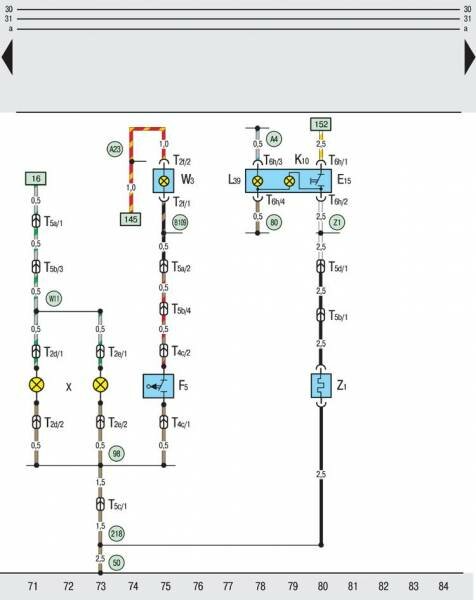 T2k – двухконтактный штекерный разъем, на правом боковом повторителе указателя поворота;