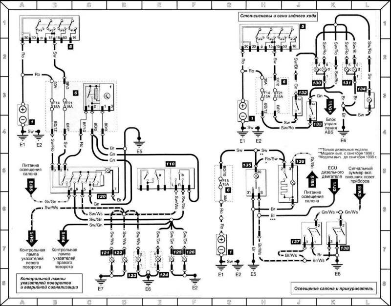 Стоп-сигналы, огни заднего хода, освещение салона, прикуриватель, контрольной лампы указателей поворотов и аварийной сигнализации