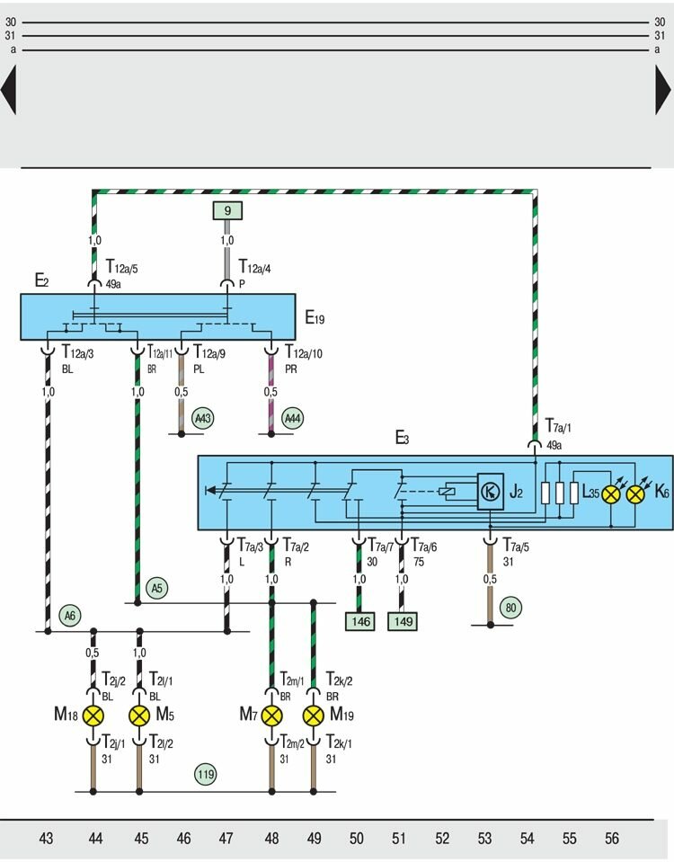 M19 – лампа накаливания правого бокового повторителя указателя поворота;