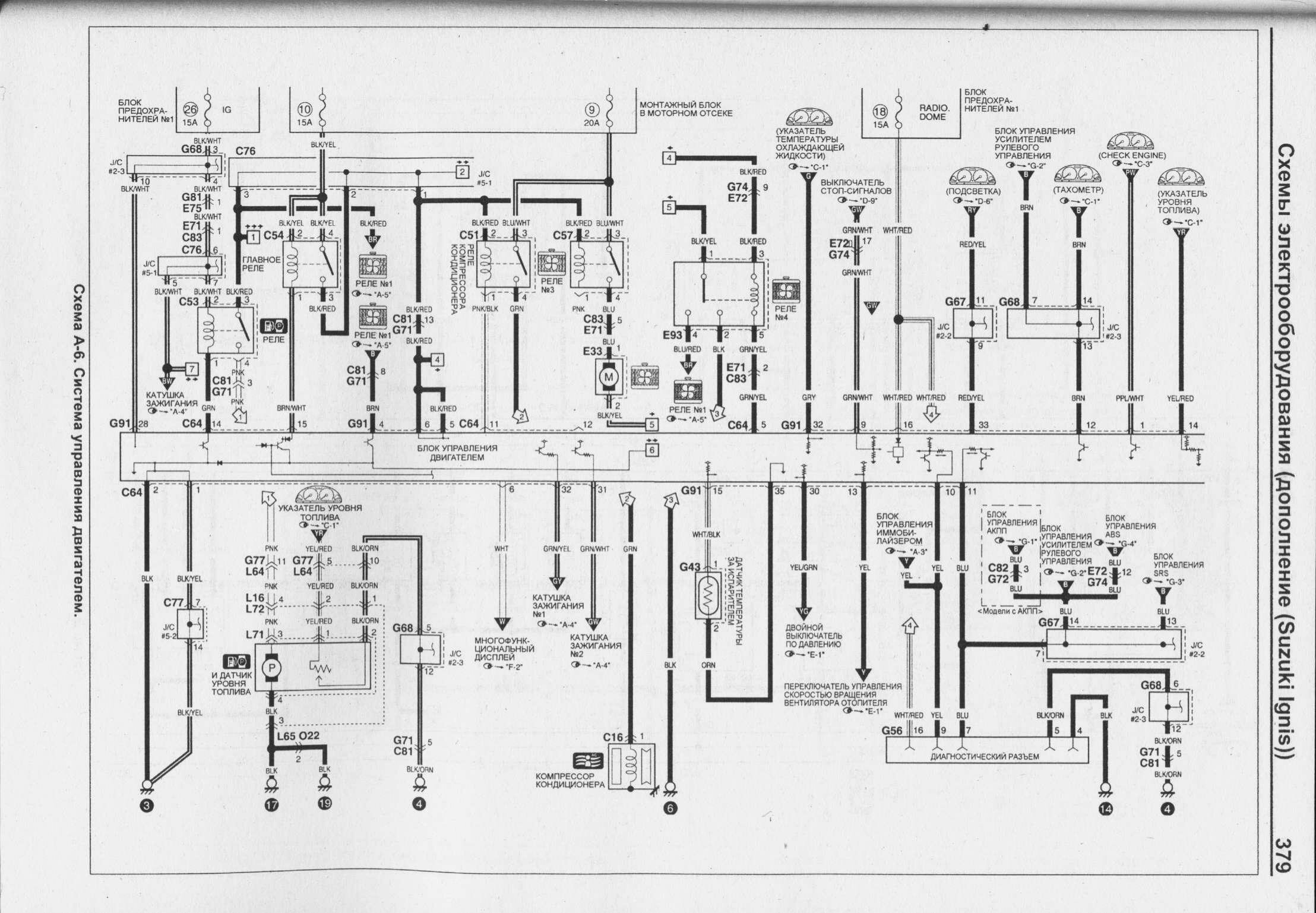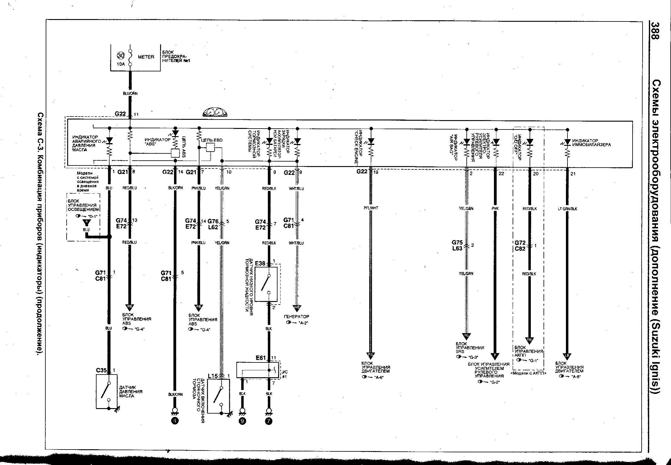 Качественные электросхемы автомобиля Suzuki Ignis на русском языке. Представленна первая часть, содержащая такие узлы: зажигания, управления двигателем, иммобилайзер, указатели поворотов, омыватели стекла и другие. В конце статьи указан пример обозначения элементов на схемах и их расшифровка. Увеличить схему можно кликнув по ней и развернув на весь экран. Вторую часть сборника электросхем Сузуки Игнис смотрите на следующей странице.