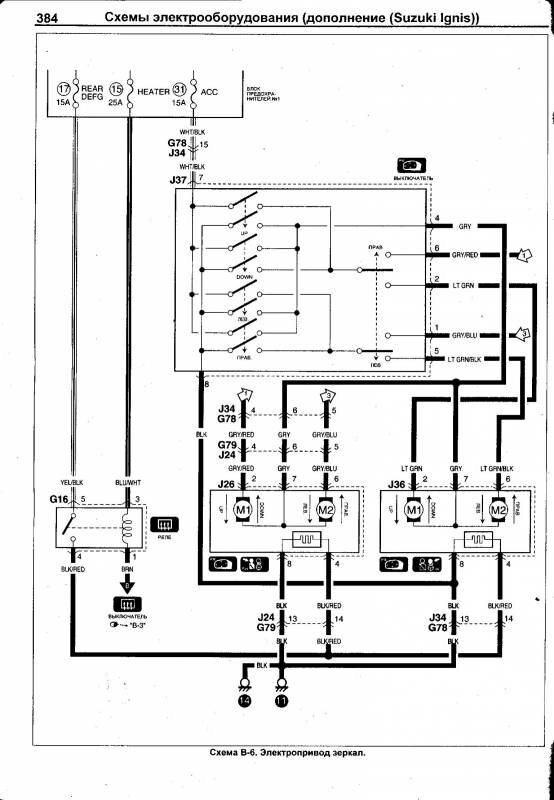 Схема электропривода стеклоподъёмников и обогревателя Suzuki Ignis