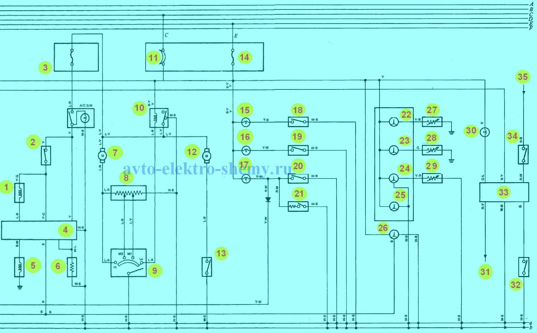 Сборник электросхем для некоторых моделей автомобилей Тойота. Приводятся схемы систем отопления, кондиционирования, контрольных приборов. Схемы электропроводки систем пуска, управления и зажигания, а так-же систем отопления и кондиционирования, система заряда тойота ланд крузер. В конце статьи несколько электросхем от тойота карина.