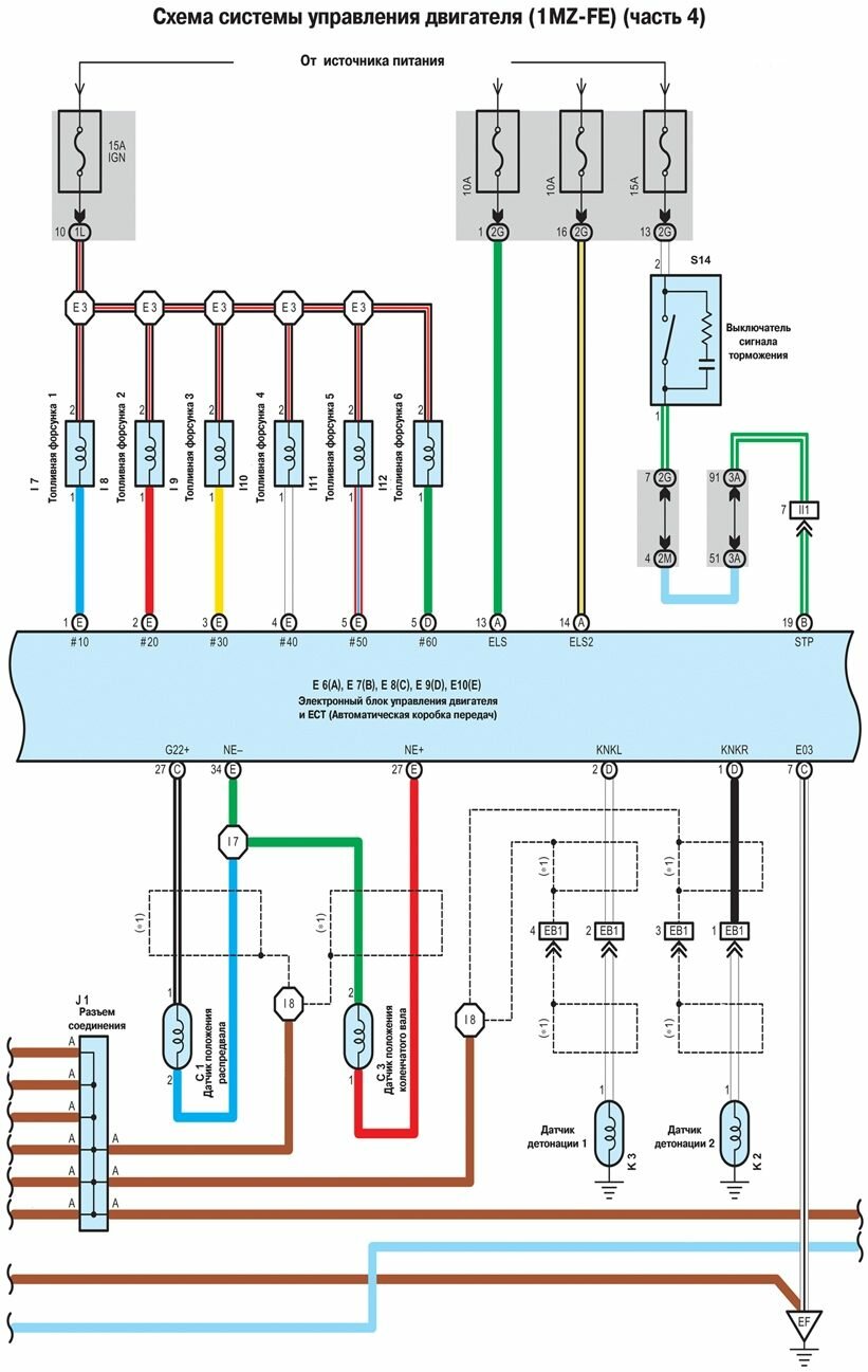 Сборник электросхем от двигателя 1MZ-FE автомобилей Тойота Камри 2001-2005 годов выпуска. Модель Camry обладает прочной внутренней структурой. Конструкция, прекрасно продуманная с точки зрения безопасности и передовых технологий, обеспечит ощущение надежности и всестороннюю заботу о водителе и пассажирах. Автомобиль обладает повышенной прочностью при столкновениях. Передняя и задняя зоны деформации, усиленные стойки и брусья, защищающие от боковых ударов, уменьшают деформацию кабины при столкновении, а также снижают угрозу травмирования людей, находящихся в автомобиле. Для защиты водителя дополнительно предусмотрены убирающийся педальный узел, что сводит к минимуму вероятность травмы ног, и травмобезопасная энергопоглощающая рулевая колонка, которая действует совместно с ремнями безопасности и подушками безопасности, уменьшая риск травмы при столкновениях.