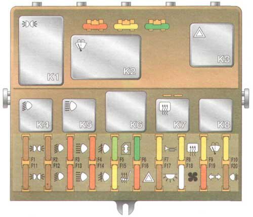 - Реле-прерыватель указателей поворота и аварийной сигнализации (в режиме аварийной сигнализации).