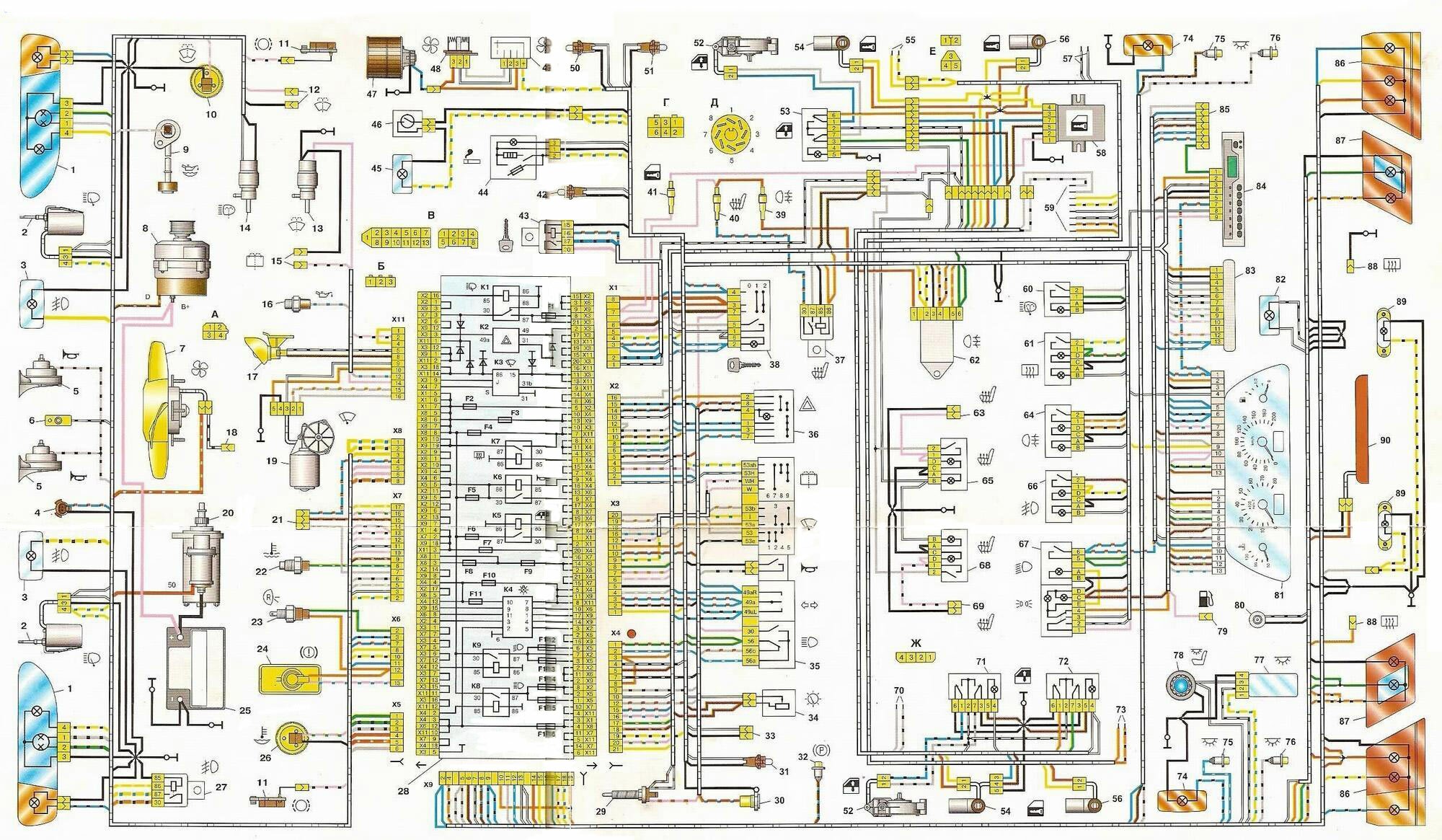 Электросхема и таблица предохранителей для автомобиля ВАЗ 2115. Увеличить схему можно кликнув на неё. Бесплатно просмотреть схемы могут все посетители сайта Электросхема