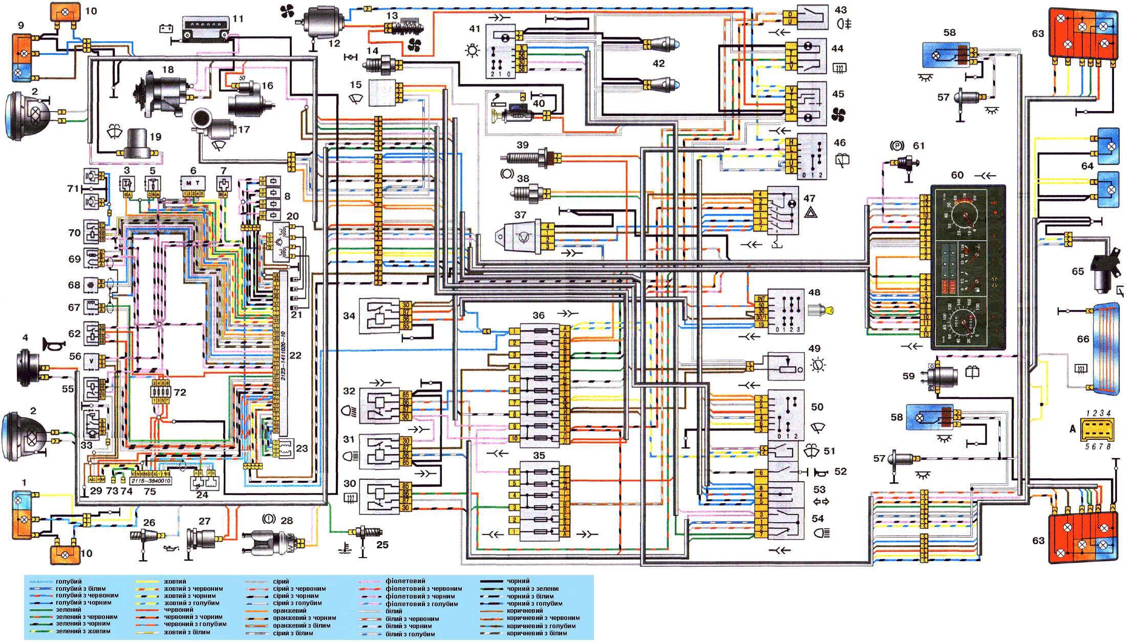 Дополнение: на схеме электрооборудования не правильно обозначено подключение осветителей номерного знака - они должны быть подключены к габаритам, а на данной схеме подключены к стоп-сигналам.